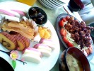 フィリピン料理の教室 揚げバナナは素揚げしたバナナに黒砂糖をからめてカラメルにします。 フィリピン風かき揚げは、もやしをいれて、カリッと揚げて、酸っぱいタレで食べます。 もち米のケーキは、ココナツミルクを入れた和菓子のような味わい。 家庭的な料理でおいしかったです。 それから、フィリピンの貧しさなど色々なお話も聞きましたよ。