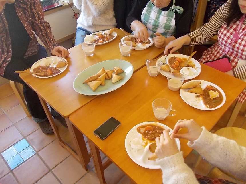 みなさま、新年あけましておめでとうございます。 1月6日のスリランカ料理、大変おいしくいただきました。 本日は、スリランカ好きのスタッフ2名も来てくれました。 講師のマンジェラさんは、お子さんたちの学校のため1月7日から故郷に帰って、また3月に日本に戻ってくるそうです。