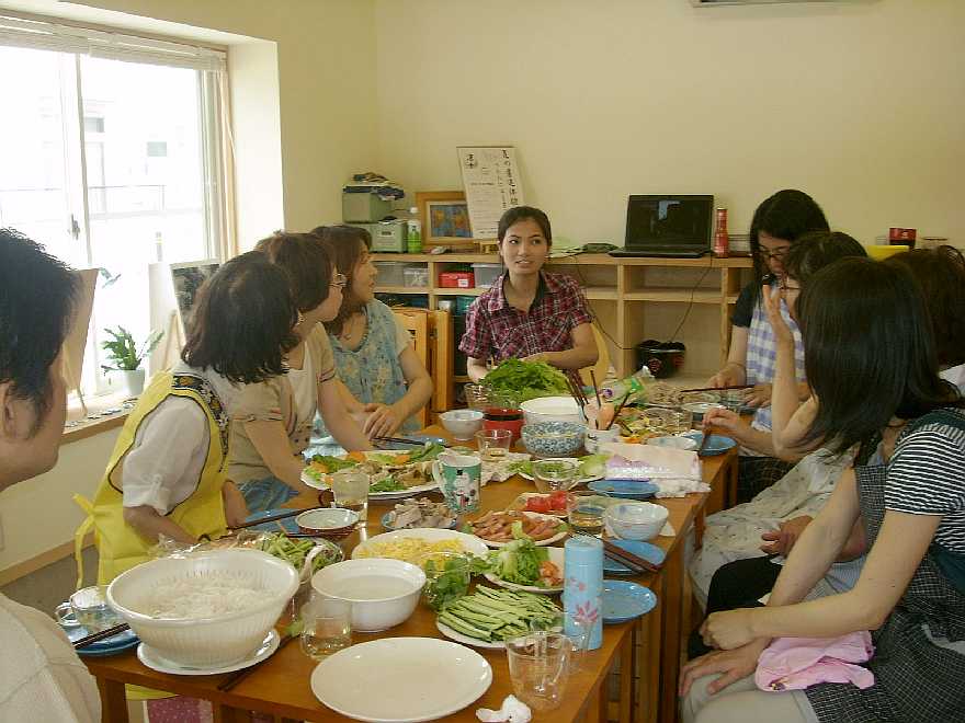 生春巻きを食べたり、色々な国の話をしたり、楽しい会でした。 |