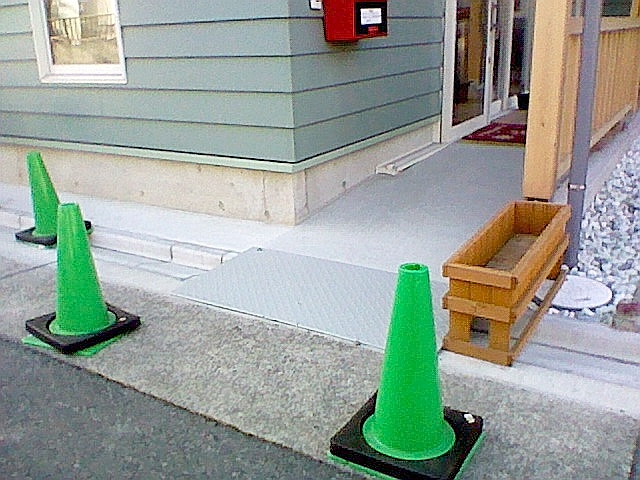 で、問題がありまして、工事のトラックが、なぜかここに駐車するのが好きで、とくに産廃さんの車が、みなとハウスの出入り口をびしっとふさいで、止めて行ってしまうことなんです。