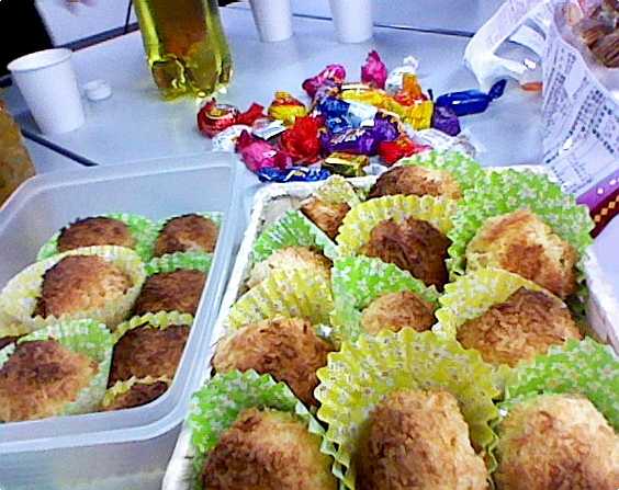 ペルーのココナツの焼き菓子 後のビンはインカコーラ(色は薄いが味は強烈)